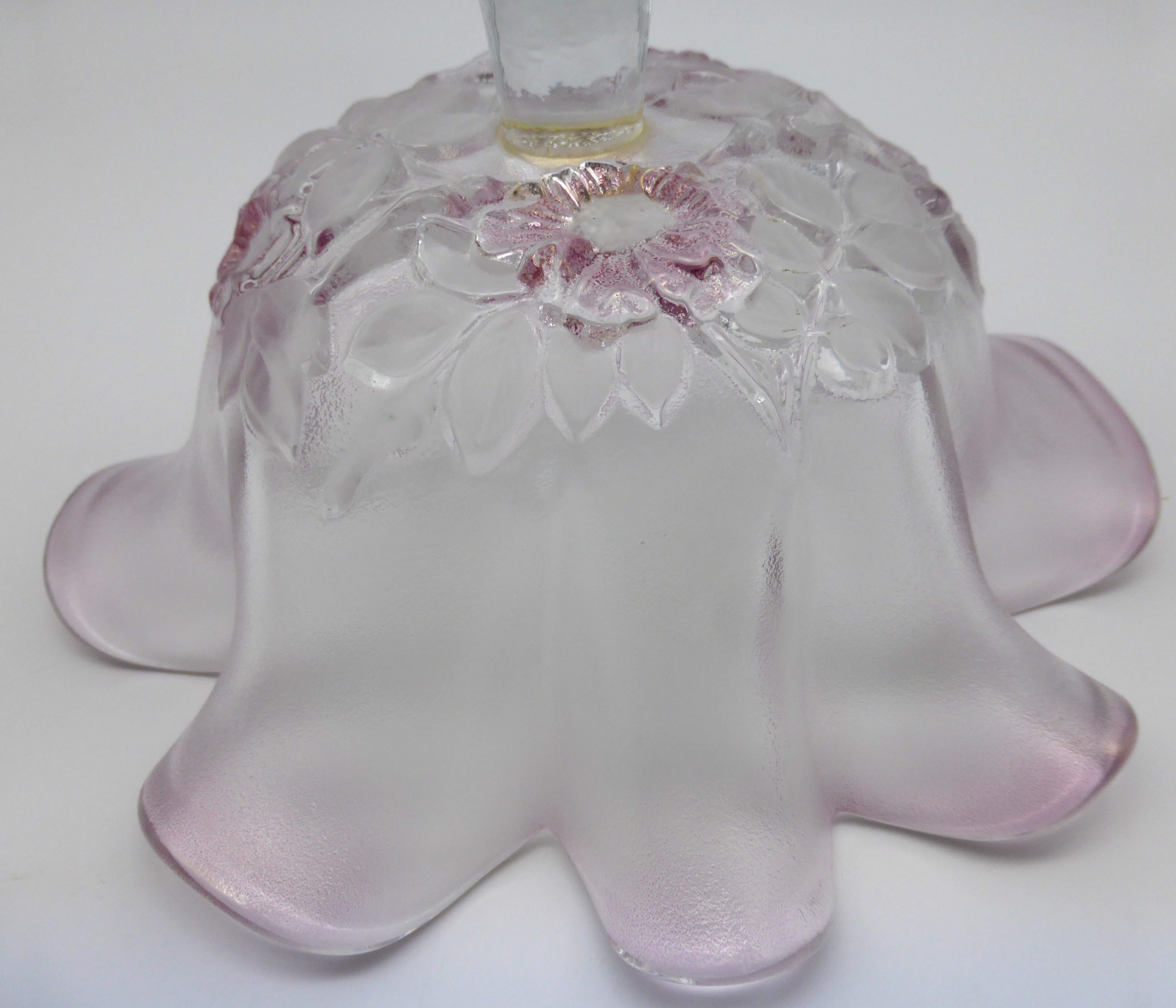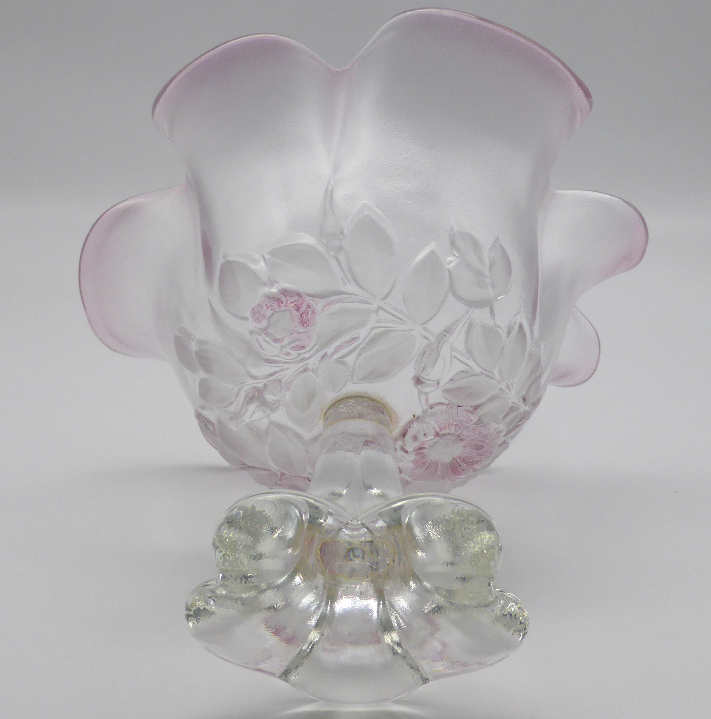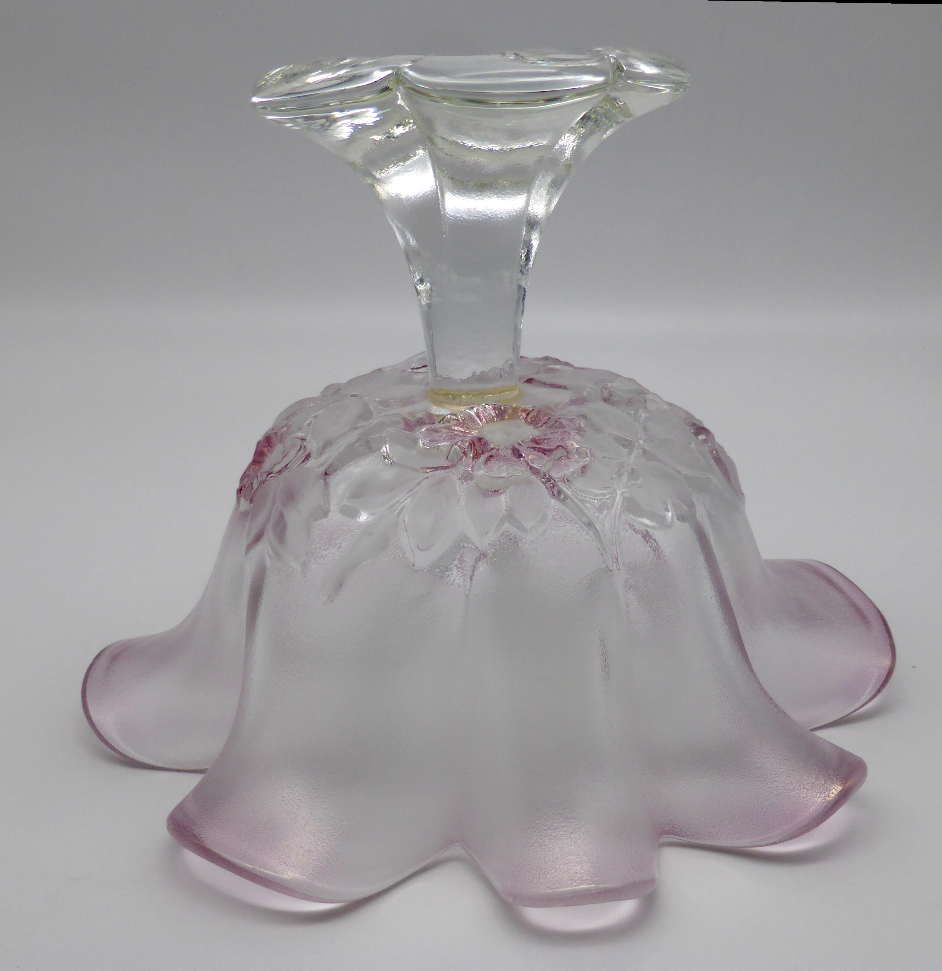 Produktinformationen "Glas Konfektschale auf Fuß gewellter Rand Blumendekor rosa"
