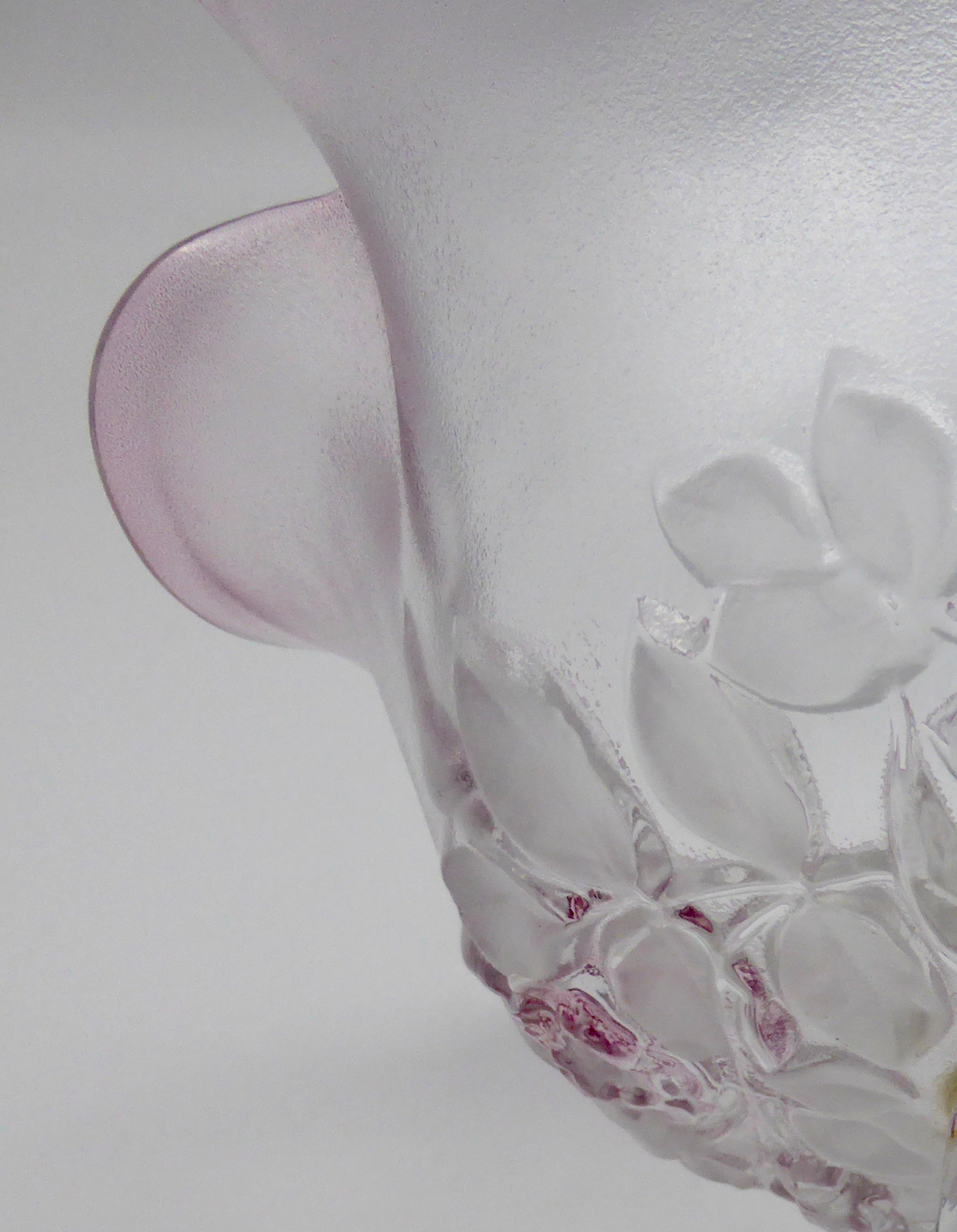 Kelch rosa schimmernd, gewellter Rand , Blüten in rosa und weiß mattiert, Standfuß in Blütenform