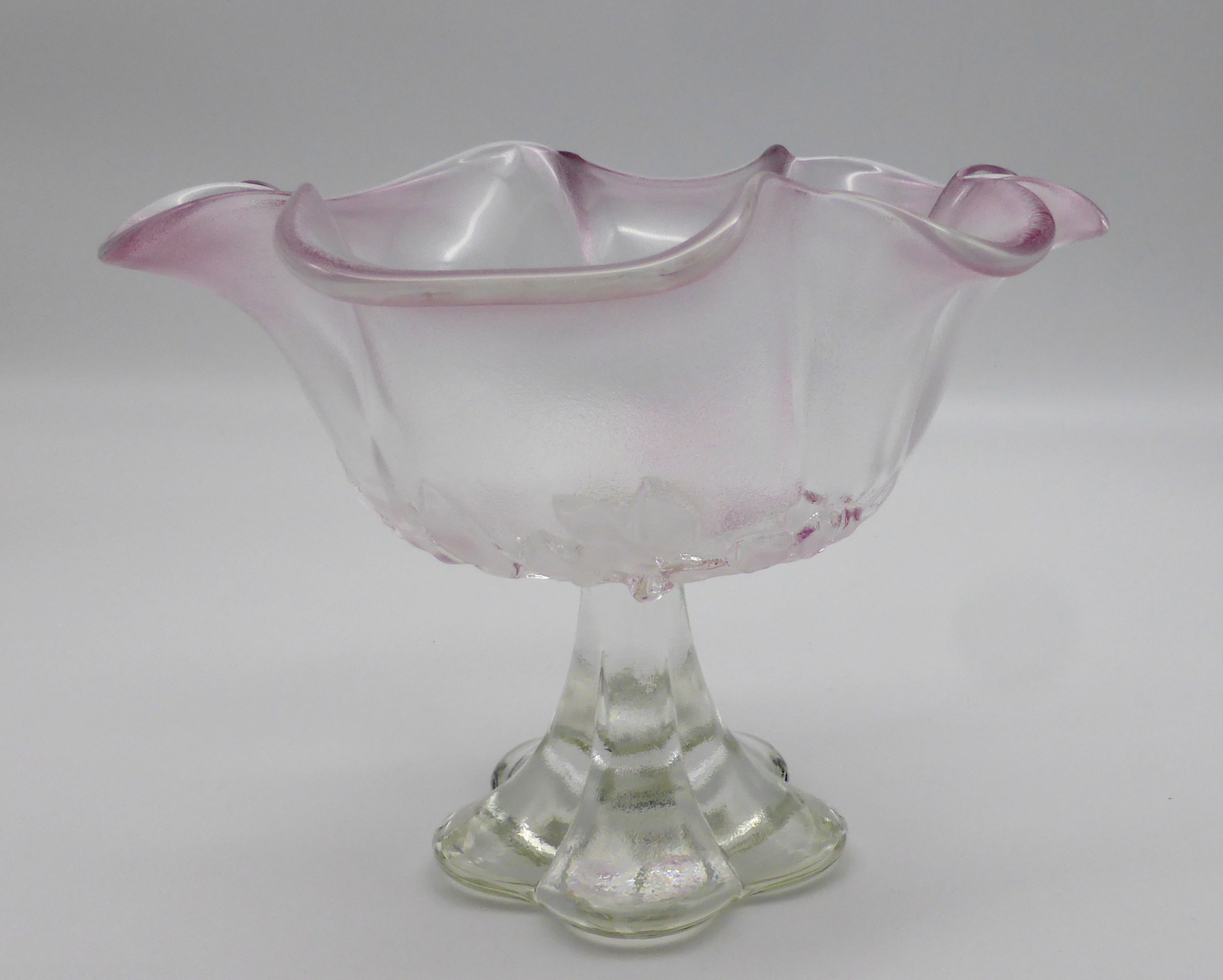 Weiterführende Links zu "Glas Konfektschale auf Fuß gewellter Rand Blumendekor rosa"