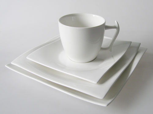 "weisses Porzellan mit schwunghaftem Design, zeitlos und schön"