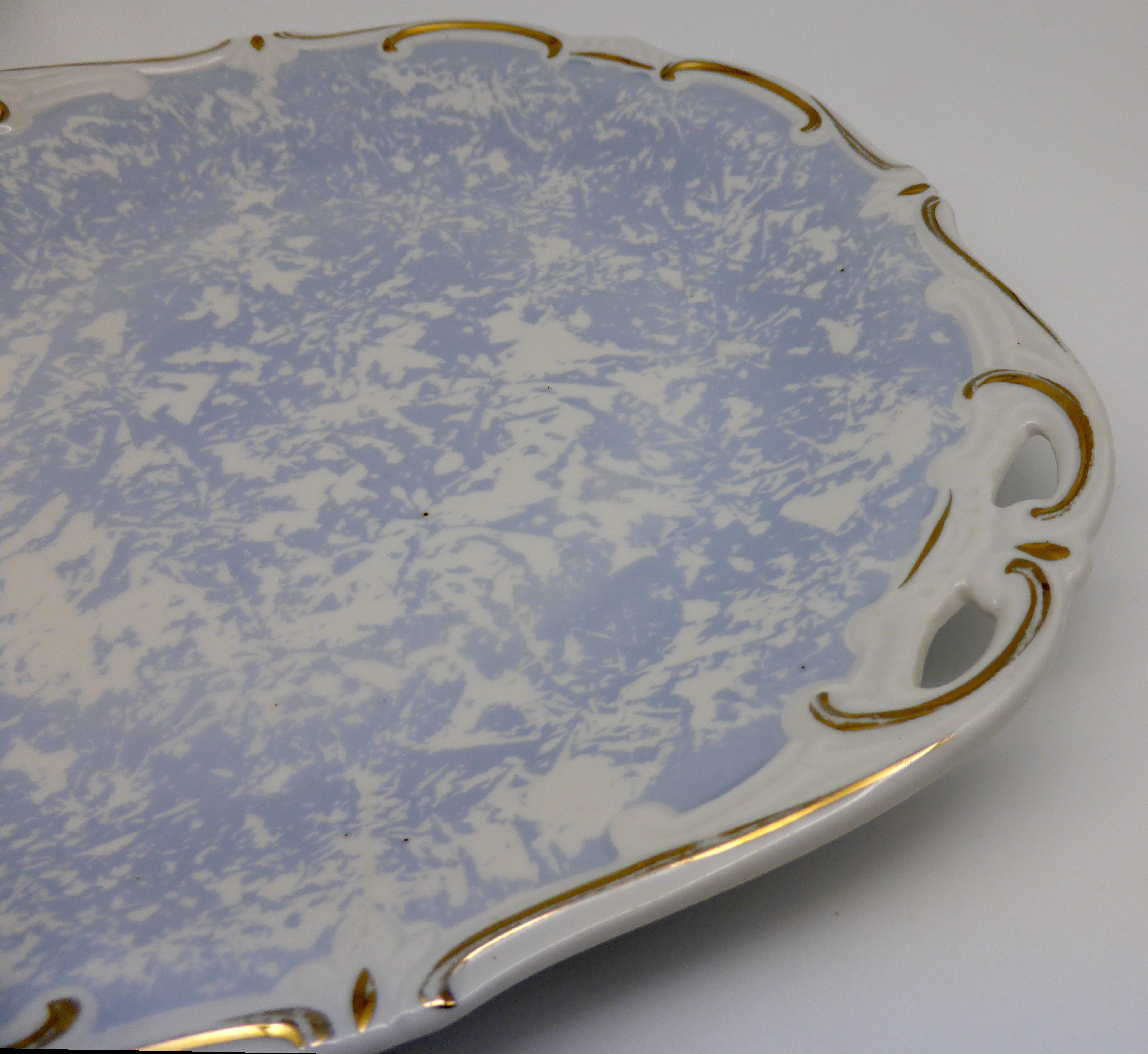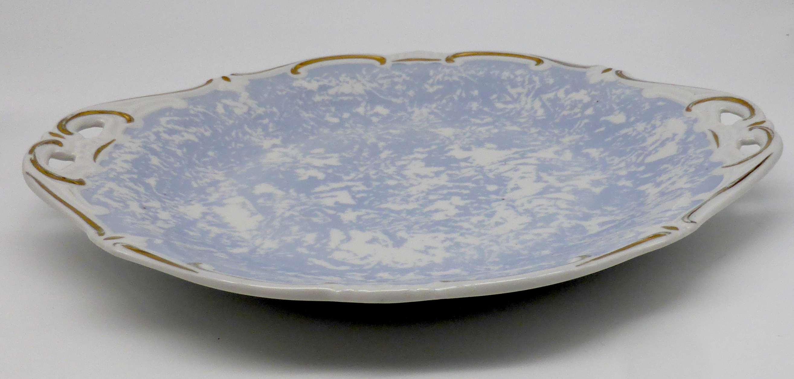 Weiterführende Links zu "Weimar Porzellan Gebäckplatte rund 23,5x25,5 cm hellblau mit Goldrand"
